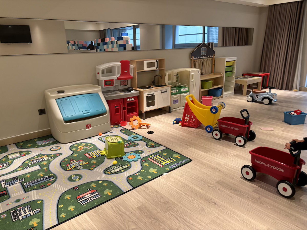 5階には室内プレイルームが3部屋あり、様々な年齢の子どもが楽しめるように設計されています。ままごとセットや三輪車、ボールプールなど、多様な遊具が揃っています。